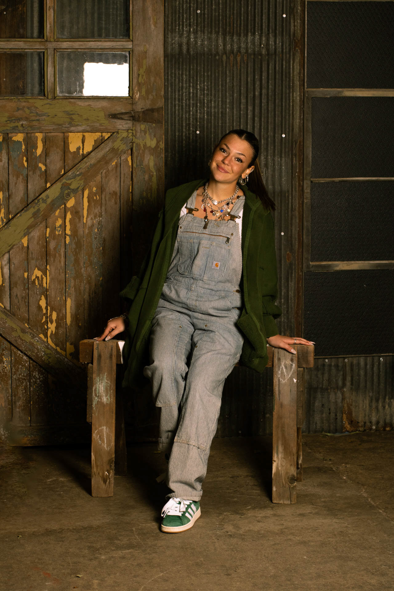 She is currently completing her senior thesis collection, a womenswear line inspired by traditional menswear workwear and labor elements, designed to explore strength and empowerment through construction and utility.